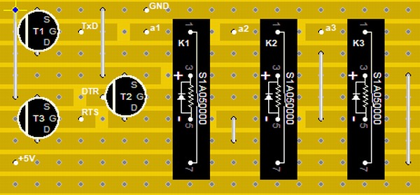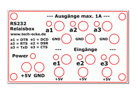 Auf der Platine sind die COM-Port-Anschlüsse DTR, RTS und TxD (Ausgänge)