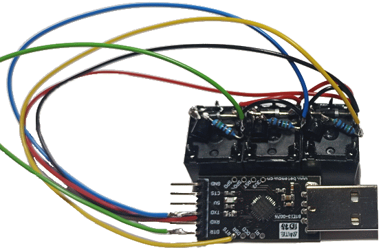 Vom USB-Adapter kann man direkt die, für die Relais
