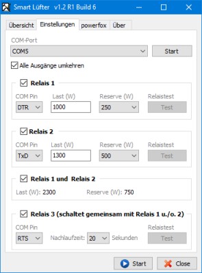 Sind die Einstellungen erledigt, so können die Relais im Hauptfenster (Reiter