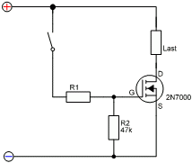 MOSFETs, auch Feldeffekttransistoren genannt, fallen unter die Rubrik der unipolaren Transistoren und besitzen einen besonderen Aufbau. Während normale Transistoren (bipolar) stromgesteuert sind, sind MOSFETs spannungsgesteuert. Sie eignen sich sehr gut zum Schalten von Lasten und sind für den Einsatz an Mikrocontrollern die erste Wahl. Damit lassen sich problemlos Spannungen schalten, die höher als die Ausgangsspannung des Mikrocontrollers liegen. Man unterscheidet sie in zwei Grundbauformen: n-Kanal und p-Kanal, wobei es im Folgenden nur um die n-Kanal-Bauform gehen wird. Optisch unterscheiden sie sich nicht von normalen bipolaren Transistoren und besitzen ebenfalls drei Anschlüsse. Diese werden als Gate (G), Drain (D) und Source (S) bezeichnet. Auch wenn sich im Inneren etwas gänzlich anderes abspielt, könnte man sie mit einem bipolaren Transistor wie folgt vergleichen: Gate = Basis, Drain = Kollektor und Source = Emitter. Dementsprechend sehen sich die beiden Grundschaltungen sehr ähnlich..