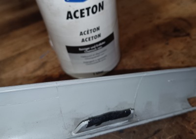 und bombenfest mit Aceton-Verdünnung kleben. Da sich die zu klebende Stelle