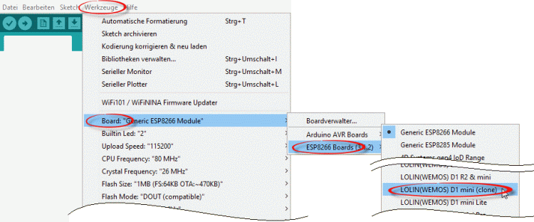 jede Menge ESP8266 basierte Boards auf die Platte. Um für den D1-Mini das