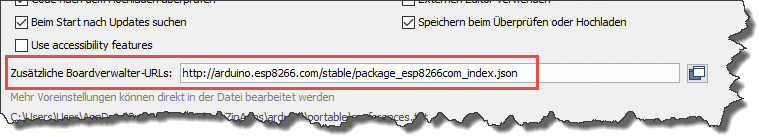 richtige Board zu wählen geht man auf "Werkzeuge/Board/ESP8266 Boards" und wählt