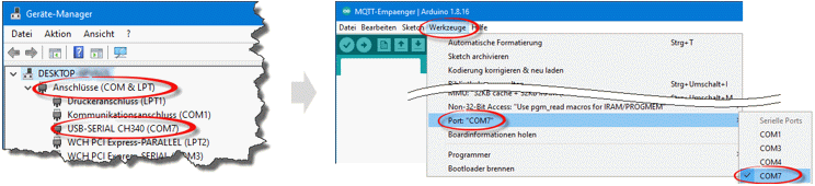 über den Windows Gerätemanager dem Adapter zugewiesenen COM-Port. In meinem Fall