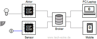 verbindet sich dann mit dem Broker. Danach beginnt der ESP8266 im 5-Sekundentakt