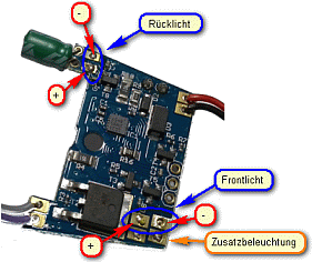 anlöten. Die roten Leitungen (+) liegen jeweils Richtung der