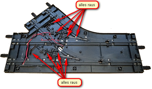 Schienen ziehen und von den Kupferblechen ablöten. Die