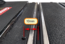 vom Slot, mit Abstand 10 mm von der Slot-Mitte sitzen. Der