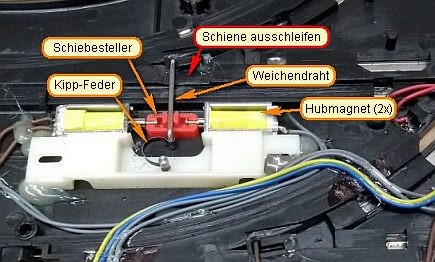 Nun kann man die Anschlussleitungen wieder an die Schiene