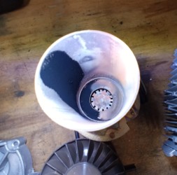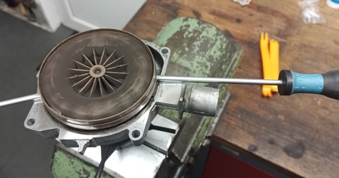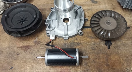 Eines gleich vorweg: Das Gebläse hat kein eigenes Lager, alles hängt direkt am Motor, und hier sind auch die verschlissenen Lager zu suchen. Das Zerlegen gestaltet sich sehr einfach.