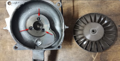 jedoch zwei Neodym-Magnete in das Gebläserad eingelassen, welche von einem im
