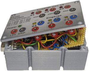 Eingangsbuchse. Die Masse der Ausgange (GND) sind ebenfalls direkt mit der