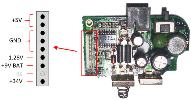 Powerboard anschauen. Mit eingestecktem Netzteil sollte man die hier angegebenen