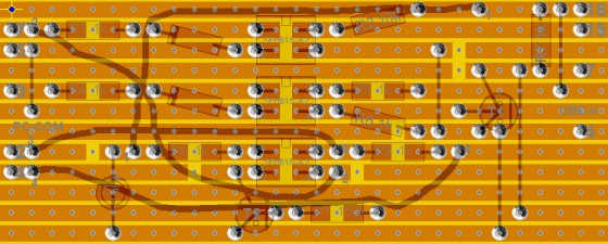 Vergrößerung) Je nach Hersteller kann der Optokoppler statt des Ausbruchs, einen Punkt am Pin 1 besitzen, dann ist dieser links/oben auszurichten. Hinweis: Bitte unbedingt auf die Trennungen der Leiterbahnen achten. Insgesamt sind es 18 Stück!