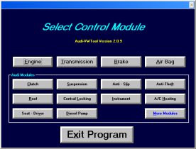 Software Fahrzeuge: Neben der kommerziellen Software VAG-COM von Ross-Tech (bis v311.2) existieren auch noch weitere und vor allem kostenlose Diagnosetools, die mit dem hier gezeigten Adapter arbeiten. Für meinen Geschmack sind die beiden besten Freeware-Alternativen WBH-Diag und Audi-VWTool. Da man zu Audi-VWTool im Netz vergeblich nach einer Adresse sucht und auch in der Software selbst keinerlei Hinweise zum Autor angegeben werden, stelle ich die Software mal hier zum Download bereit.