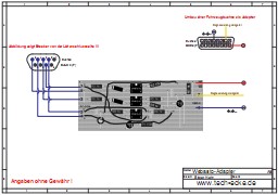 Bei der Bestückung sollte man mit den unempfindlichsten Bauteilen zuerst beginnen, also Drahtbrücken, Widerstande, Dioden, Elko und dann Optokoppler und Transistoren. Obwohl die Kabel (blau) eigentlich sehr unempfindlich sind, sollte man diese, zu Gunsten der Zugänglichkeit erst ganz zum Schluss verlöten. - Bei den Dioden