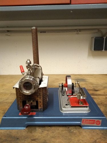 | Die D8 ist der große Bruder der D6. Sie ist ebenfalls wie die D6 mit einem Schwingzylinder ausgestattet, jedoch in größerer Ausführung (Bohrung 9mm, Hub 16mm). Das Kesselvolumen ist mit 155 ccm ebenfalls um 20 ccm größer als das der D6. Die hier ausgestellte Maschine stammt aus den 70/80'er Jahren. | ||||||||
