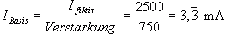 Berechnung relevante Werte sind demnach: Zunächst rechnet man den Strom aus, der an der Basis anliegen soll, also fiktiv angenommener Strom / Verstärkungsfaktor
