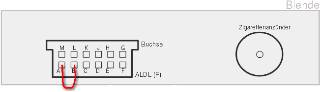Zunächst mal die Diagnose (fast) ohne Hilfsmittel. Im Grunde ist es gar keine richtige Diagnose sondern lediglich das Auslesen des Fehlerspeichers des Motorsteuergerätes (ECM/ECU). Fehler Auslesen: Zum auslesen der Fehler brückt man zunächst die Anschlüsse A und B der Diagnosebuchse mit einer aufgebogenen Büroklammer bei ausgeschalteter Zündung.