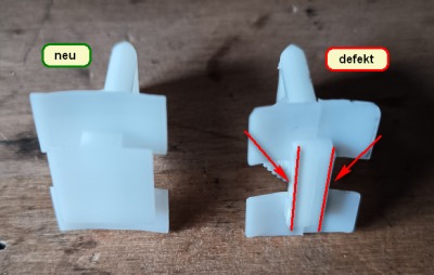 Bei den beiden Klammern (GM20462090) waren die Laschen zum Einschuhen in die Blende abgebrochen, so dass die Verkleidung nicht mehr in Position gehalten wurde - also der Grund der ganzen Operation.
