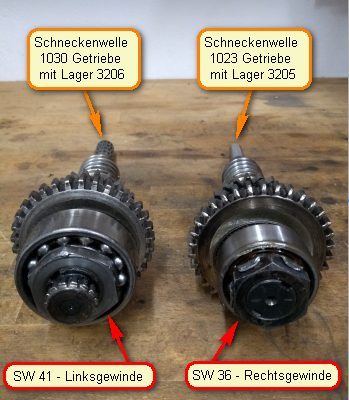 Das Überholen des 1023/30-Getriebes läuft im Wesentlichen recht reibungslos, jedoch gibt es dennoch einige Fallstricke, die ich hier mal zusammentragen möchte.Auf den ersten Blick scheint das Getriebe vom 1023 und 1030 gleich zu sein, doch bei genauem Hinsehen gibt es doch einige Unterschiede. Der wesentliche Unterschied ist beim Schrägkugellager der Schneckenwelle zu finden. Hier hat das 1023-Getriebe ein 3205er und das 1030 ein 3206er Lager verbaut, zudem gibt es einen Unterschied im Gewinde, dazu gleich mehr. Indizien für ein 1023-Getriebe sind die beiden angeschraubten Bremshebellager. Beim 1030-Getriebe besitzen diese einen gesenkgeschmiedeten Anschraubkörper, während die des 1023 einen Vierkantstahl als Körper haben. Auch die Zapfwelle besitzt einen anderen Aufbau und die Öleinfüllöffnung ist kleiner als die vom neueren Getriebe. Auch die Getriebeentlüftung (mod. Schmiernippel?) hat eine unterschiedliche Position.Aber auch der 1030-Getriebetyp teilt sich nochmals in die Variante mit gestecktem (neu) und festem (alt) Kardanwellenflansch. Da ein Kreuzverbau nicht ausgeschlossen ist, sollte man Gewissheit haben, um welchen Getriebetyp es sich handelt, bevor man sich an die Ersatzteilbeschaffung macht. Oder noch besser: „Zuerst zerlegen – messen – und dann bestellen!“Welche Teile benötigt werden findet man übrigens >>> hier <<<
